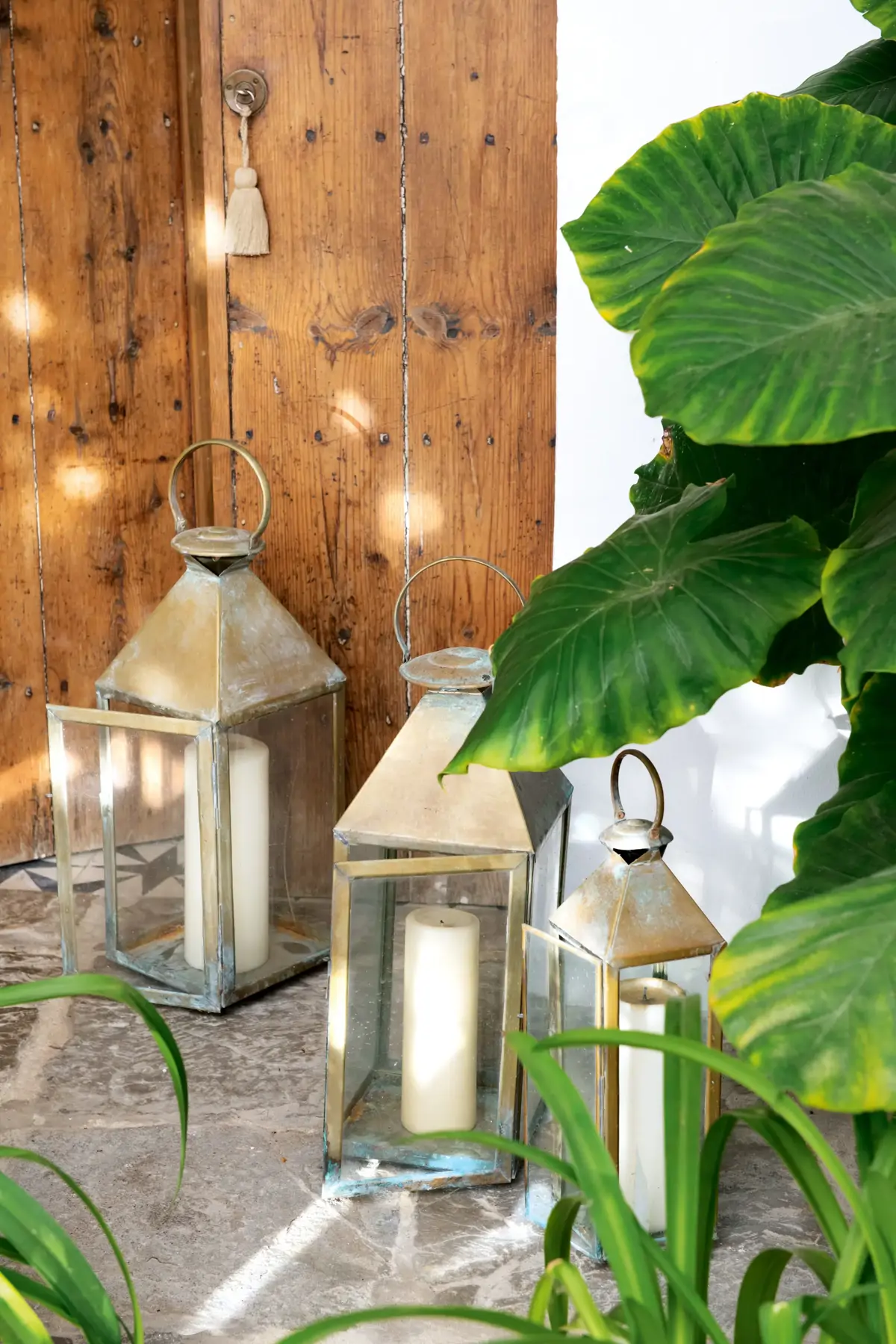 Les lanternes sont intemporelles et apportent la touche finale parfaite à votre décoration de terrasse. Jouez avec différents modèles, couleurs et matériaux . Vous pourriez par exemple opter pour des lanternes comme celles-ci, en métal vieilli et équipées de bougies LED : très sûres et idéales pour illuminer votre espace extérieur la nuit.