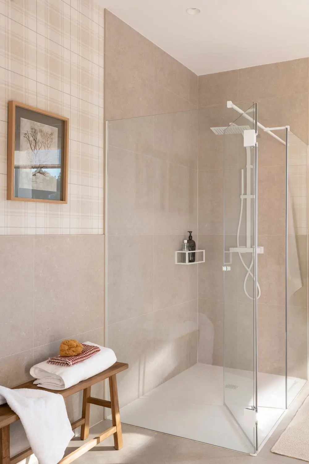 Et les murs ? Pour les revêtir, privilégiez les carreaux de porcelaine XL, de 30 x 100 ou 40 x 120 cm. En minimisant les joints, vous créerez une continuité visuelle qui contribuera à agrandir l’espace. Dans la mesure du possible, utilisez le même matériau pour les murs et le sol, et essayez d’harmoniser la teinte du plafond.