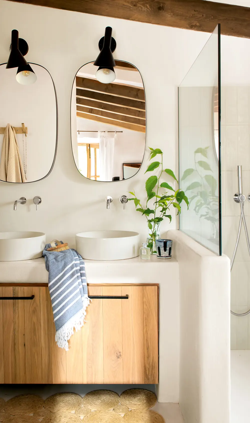 Accessoires . Serviettes, porte-savons, porte-brosses à dents… Choisissez-les dans des tons clairs et jouez avec eux pour créer un décor plus harmonieux.