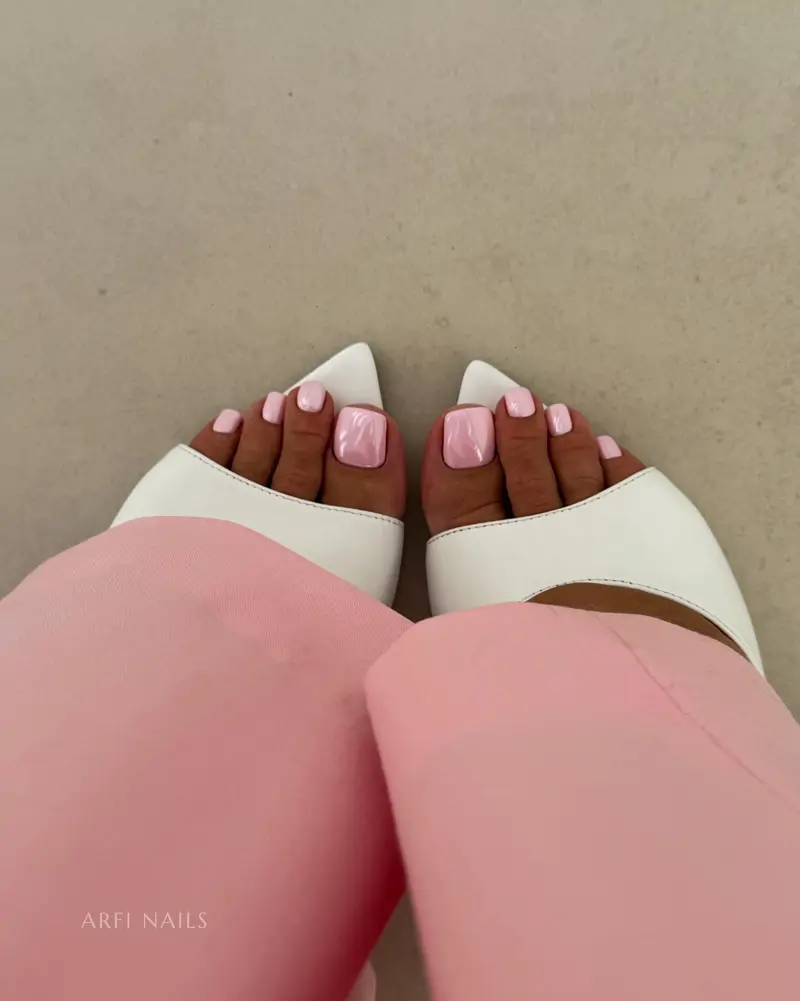 7.La couleur rose poudrée pour nos ongles de pieds