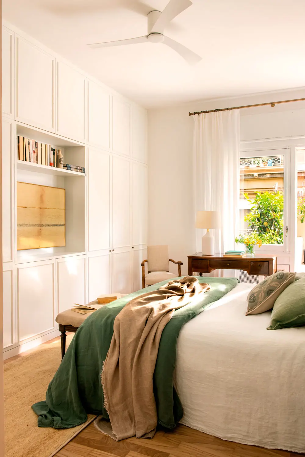 L’une des solutions préférées de Juancho González pour créer de l’espace dans les petites chambres est d’intégrer des éléments mobiles qui permettent d’adapter la chambre aux différents moments de la journée .