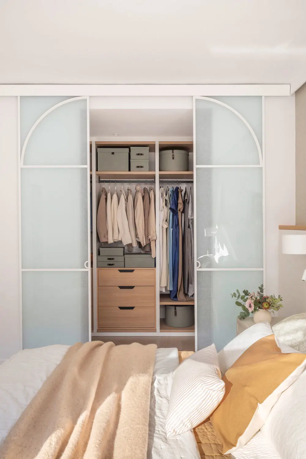 On gagne ainsi de l’espace pour les vêtements de saison, le linge de maison et même les chaussures, ce qui libère d’autres meubles et désencombre la pièce.