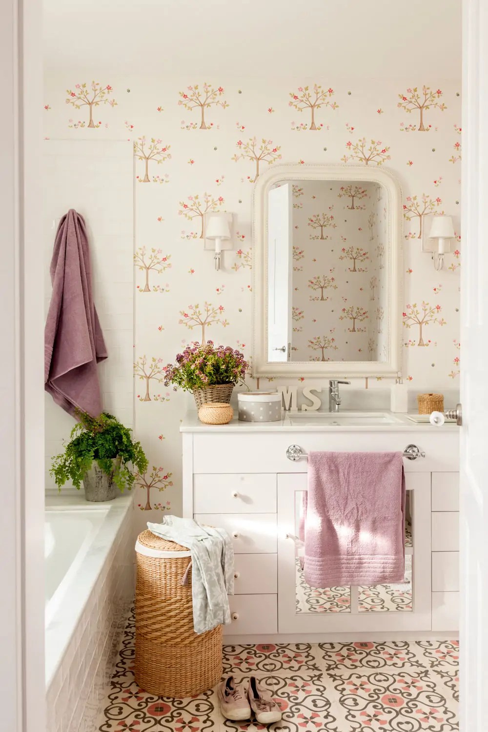 L’une des façons les plus populaires d’insuffler un air printanier à une salle de bains est de tapisser un mur.