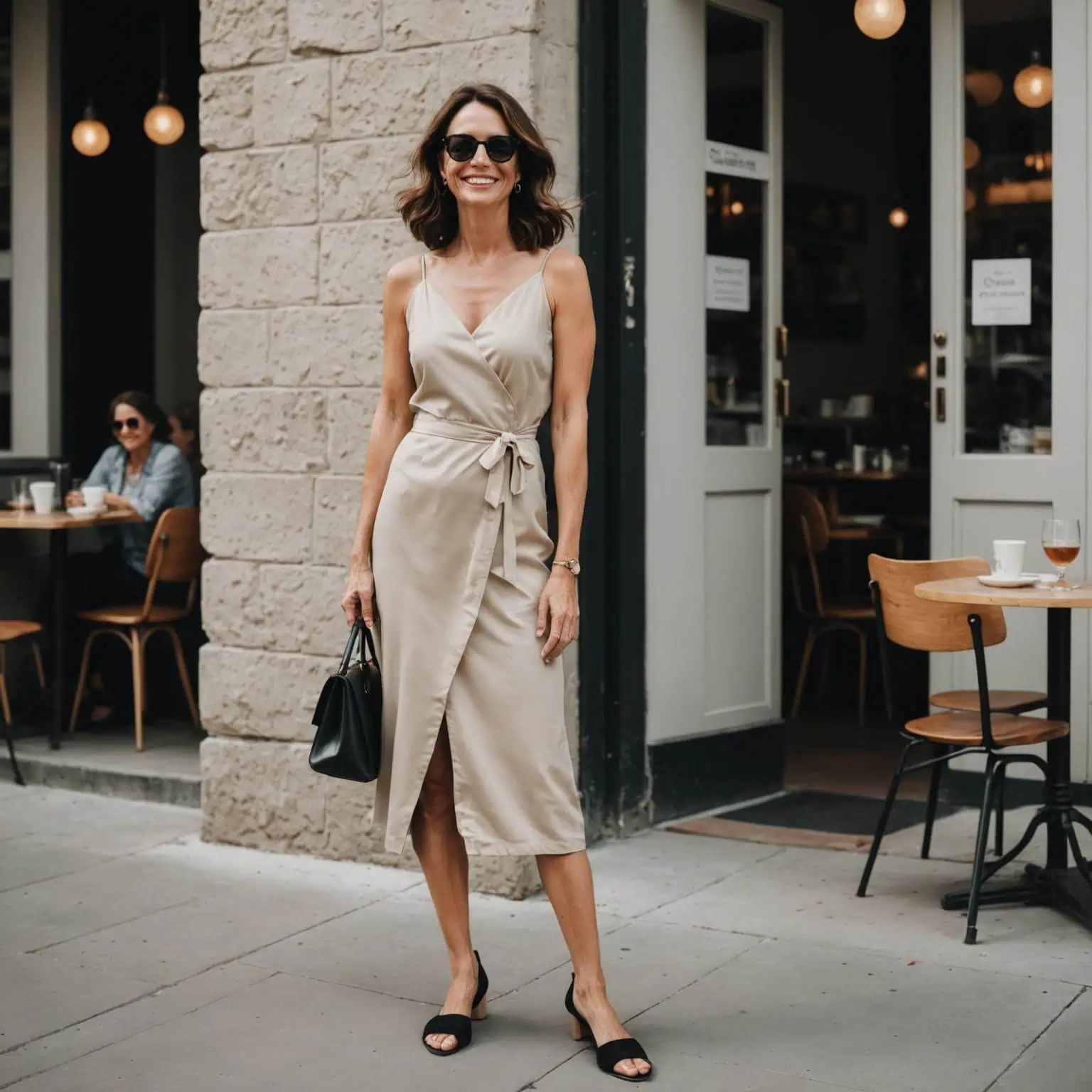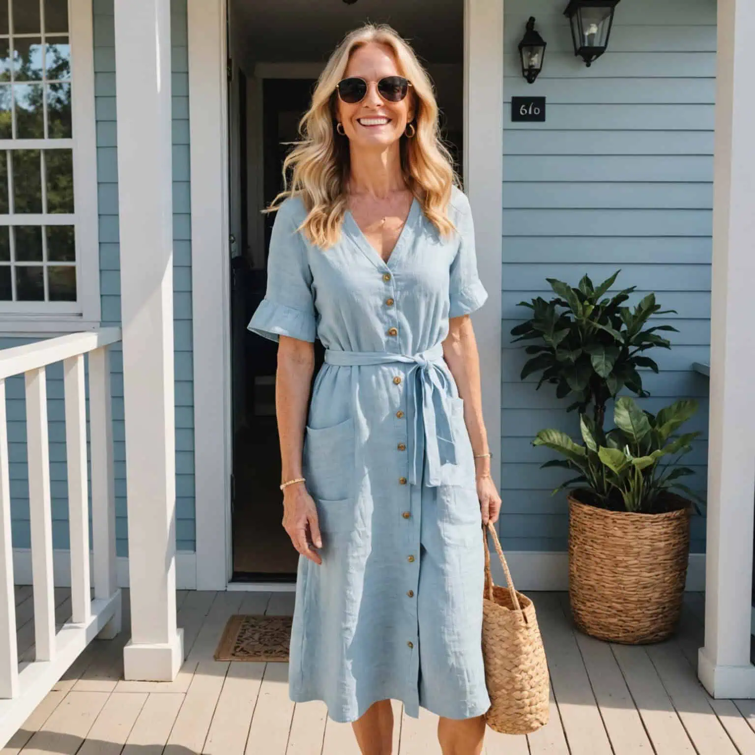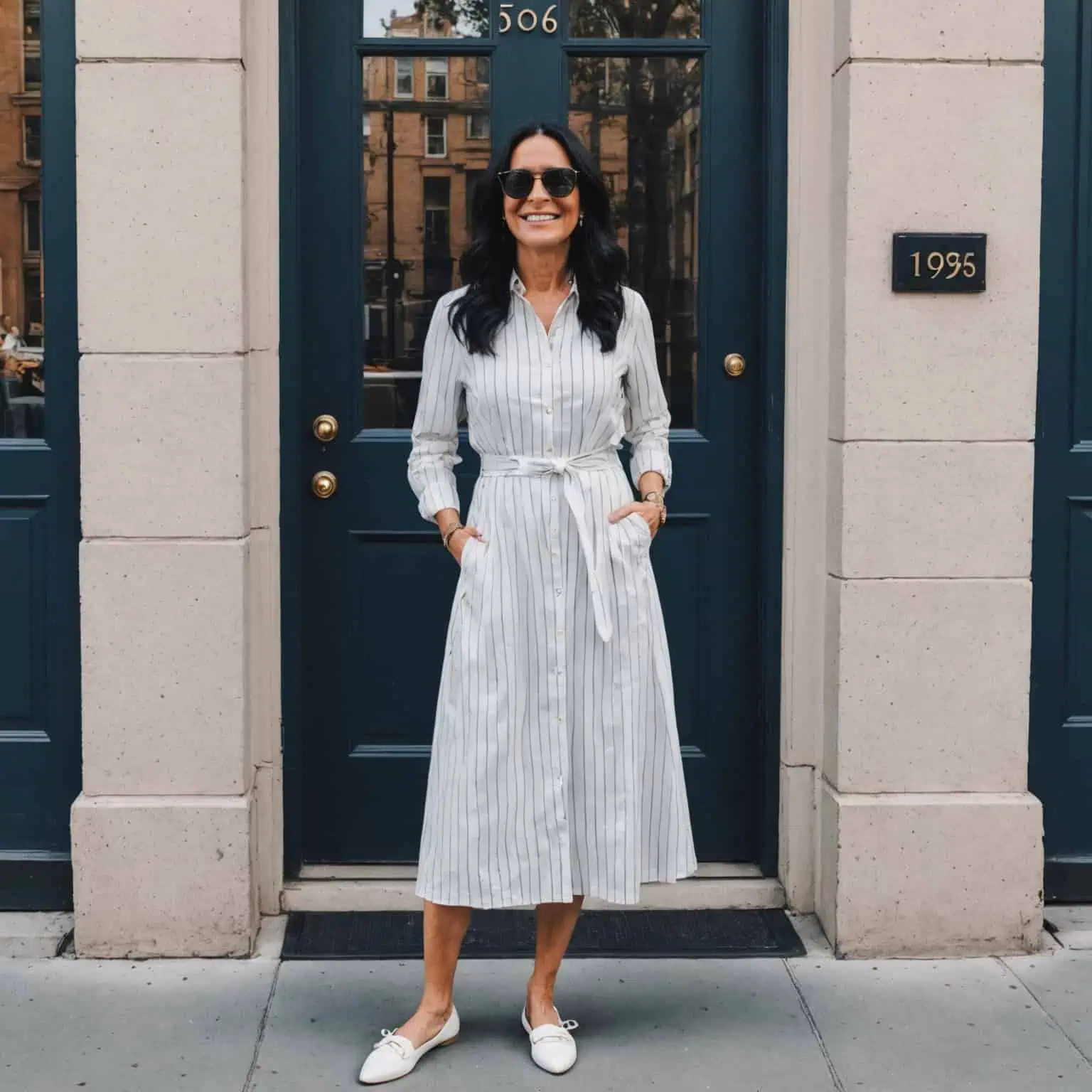 La robe midi boutonnée est une valeur sûre. Elle allie confort, élégance et praticité. Une ceinture permet de structurer la silhouette, tandis que des sandales apportent une touche estivale.