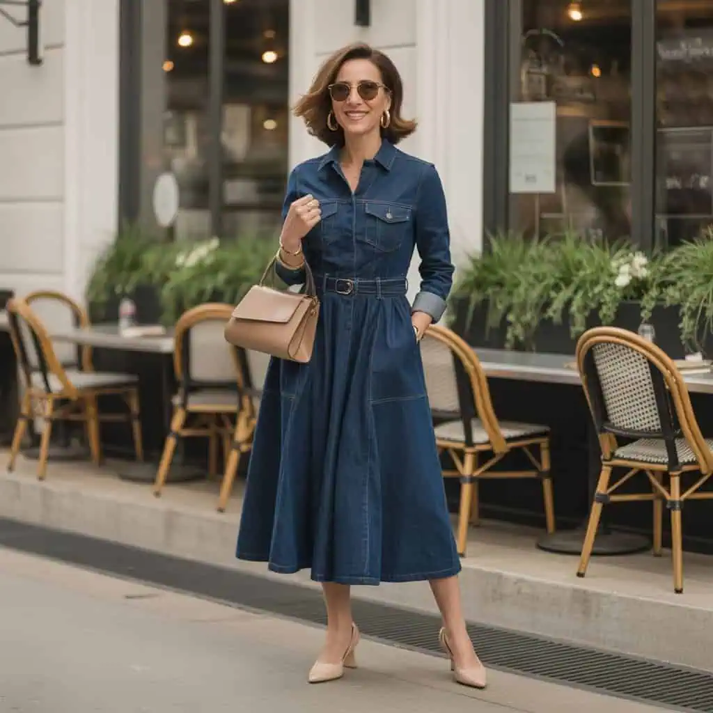 1. La robe midi en denim : le chic décontracté par excellence