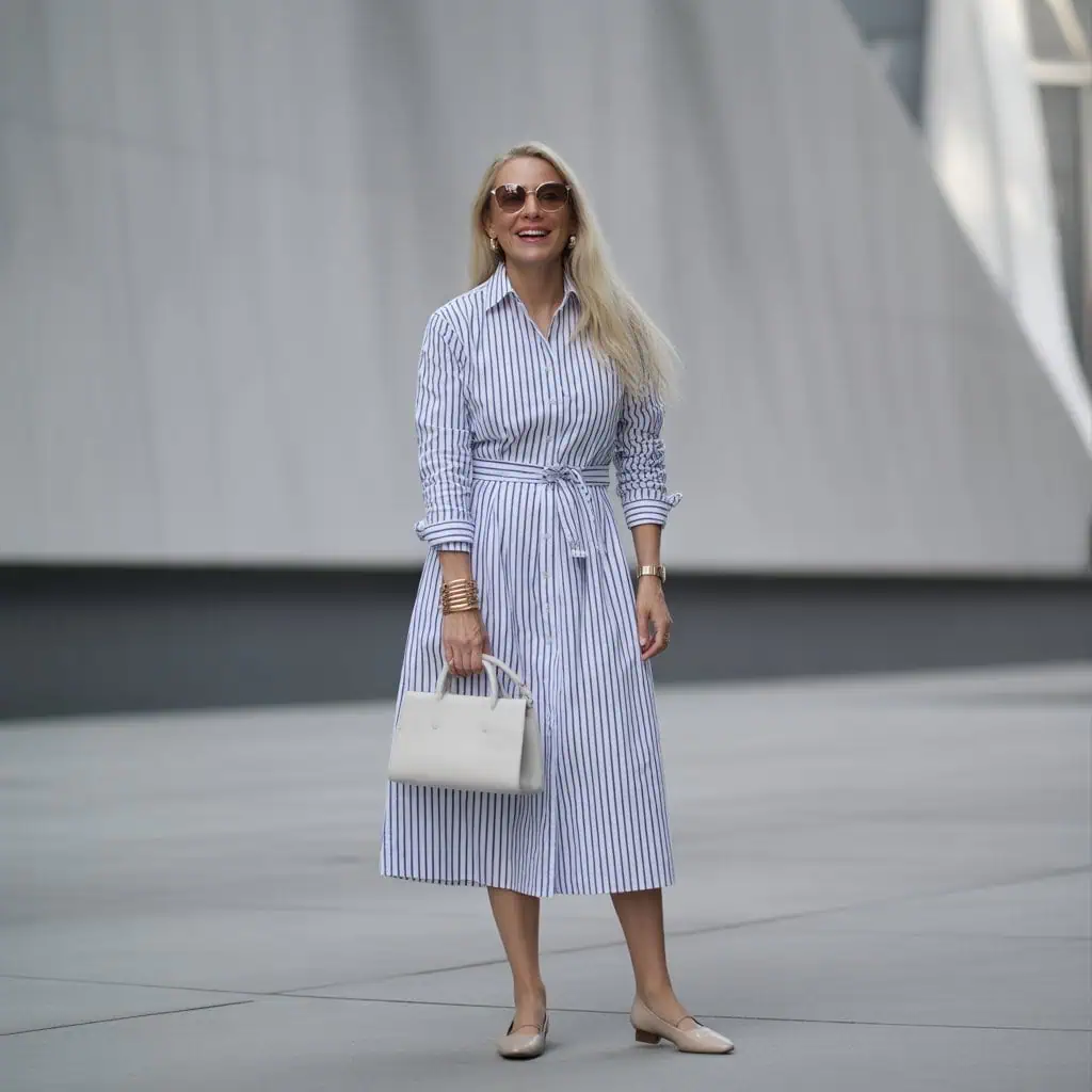 5. La robe ceinturée à rayures : élégance et légèreté