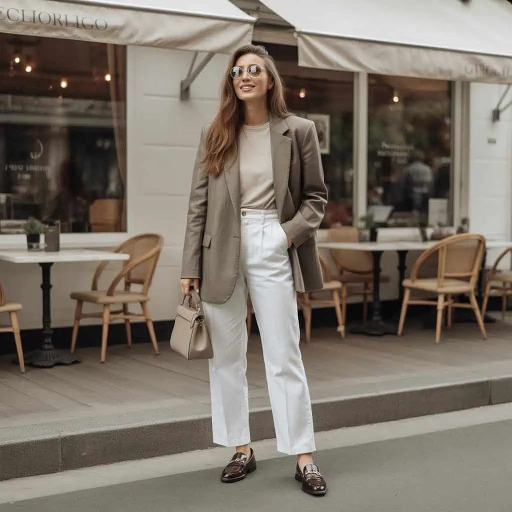 Cette tenue dégage une allure chic et soignée, parfaite pour un brunch entre amies ou une journée shopping stylée.