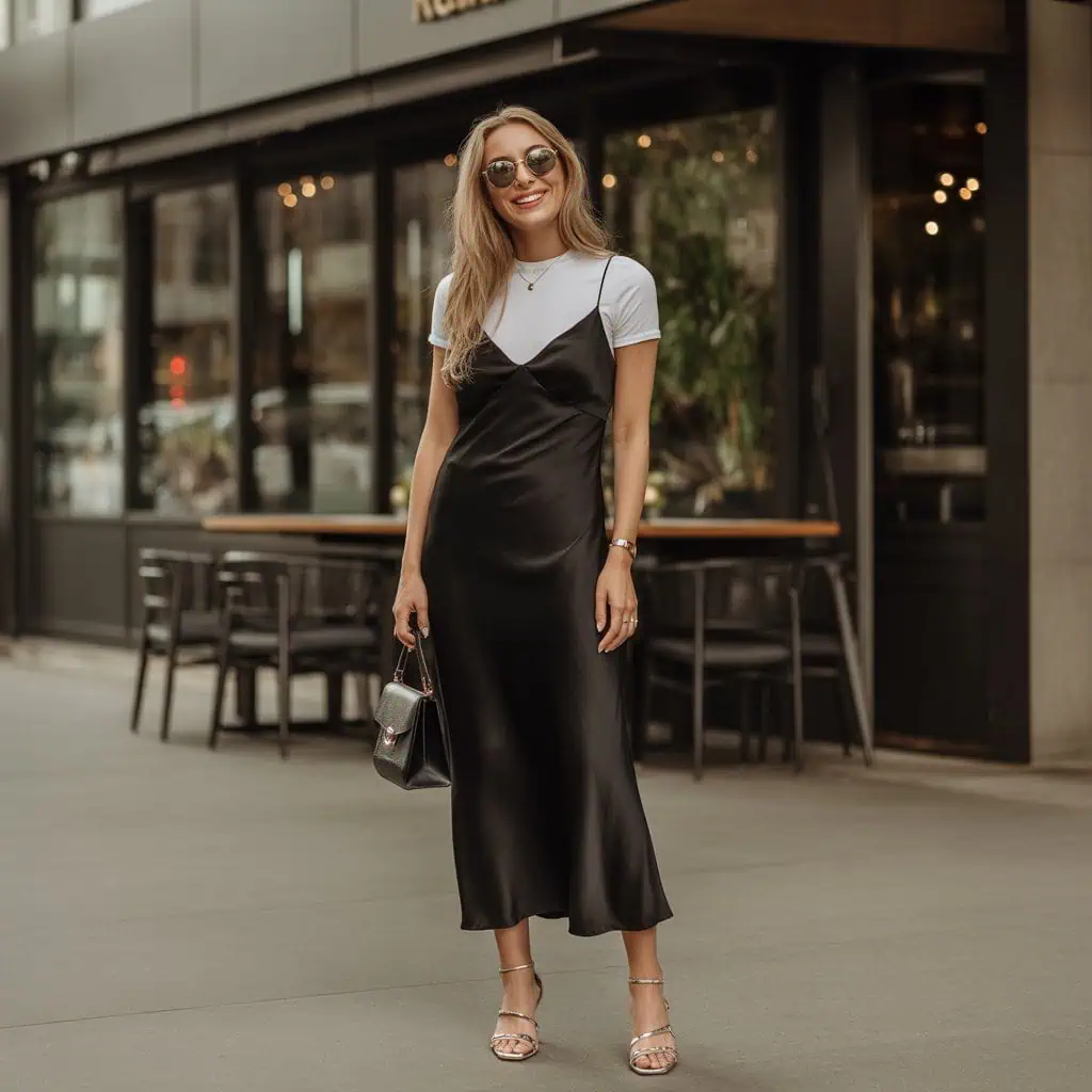 Cette tendance allie décontraction et sensualité, le t-shirt ajusté contrastant joliment avec la fluidité délicate de la robe. Elle confère une allure décontractée mais toujours chic, idéale pour diverses occasions, des sorties en soirée aux brunchs entre amis.